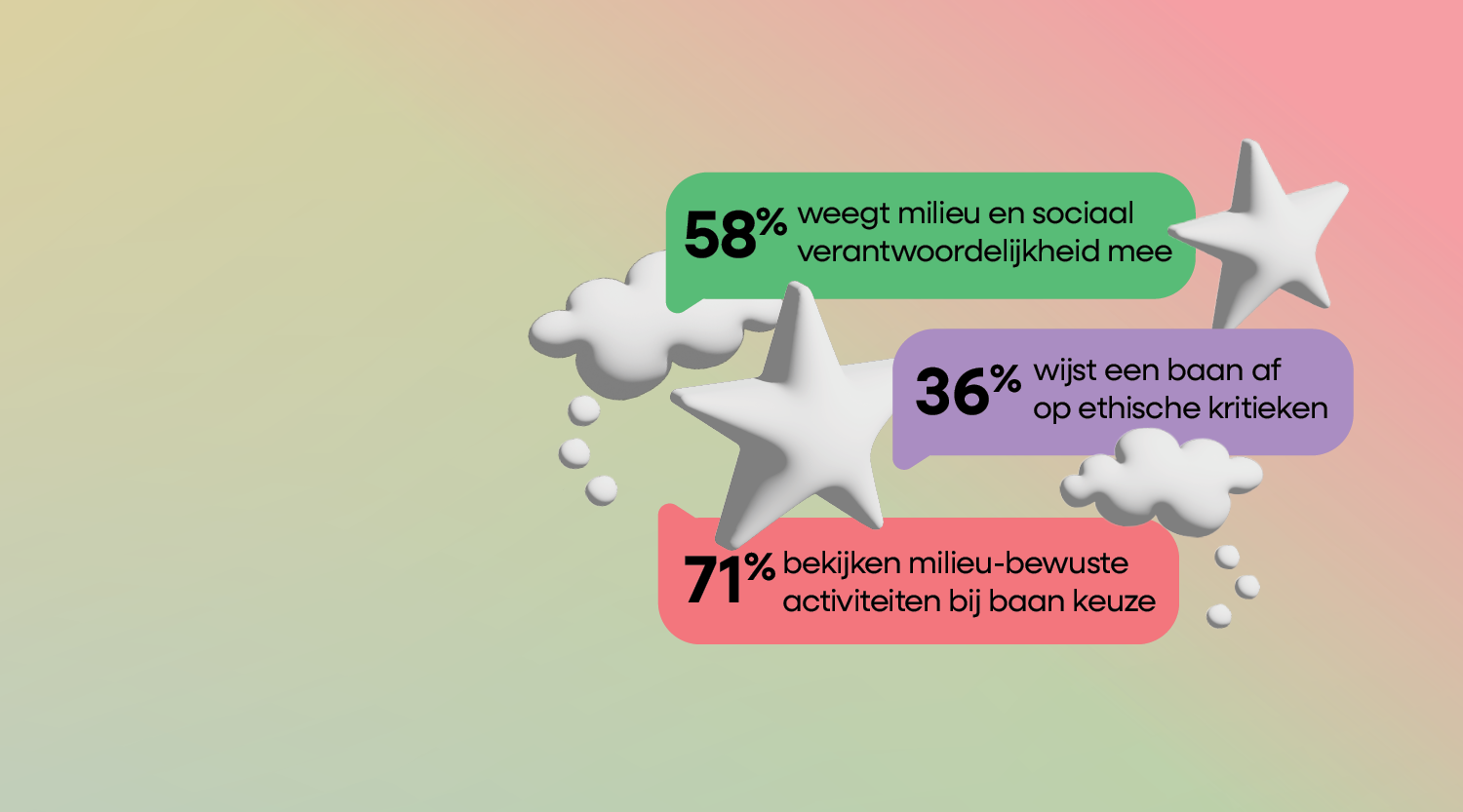 • 71% van de werknemers beoordeelt de milieuprestaties van een werkgever tijdens hun beslissingsproces.